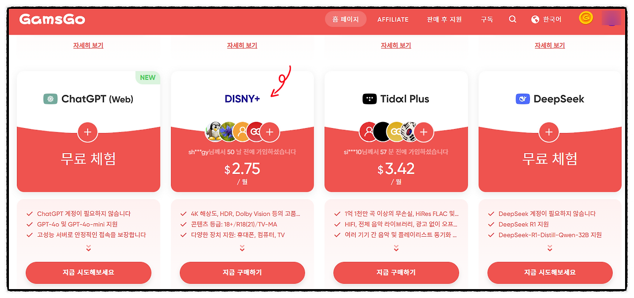 GamsGo에서 디즈니 플러스 구독하는 방법